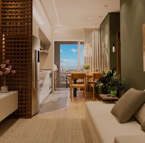 As unidades foram projetadas para oferecer o máximo de eficiência e conforto, dispondo de dois dormitórios e varanda gourmet integrada, ideal para momentos de lazer privativo. Com três torres elegantes de treze pavimentos, o condomínio oferece plantas inteligentes que se adaptam ao estilo de vida de jovens famílias e profissionais que buscam praticidade sem abrir mão do bem-estar.
