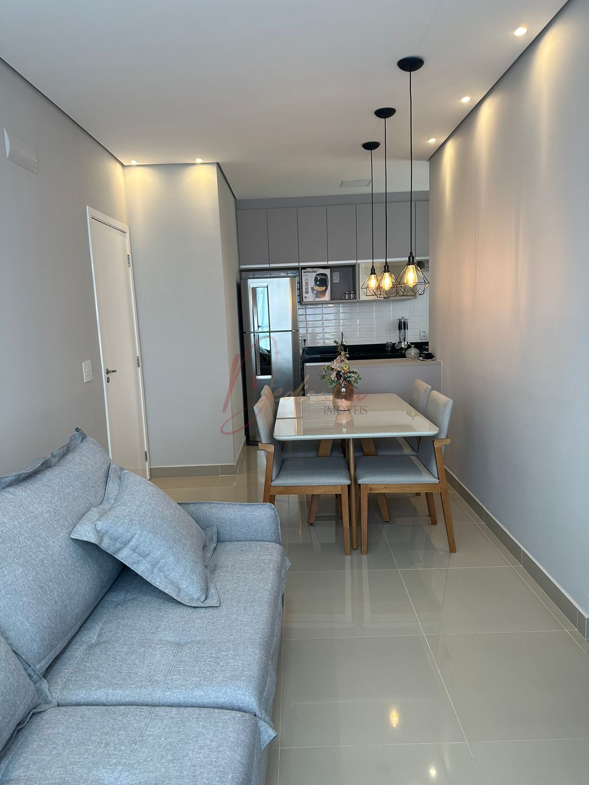 O interior foi totalmente transformado: todos os cômodos receberam revestimento em porcelanato de primeira linha, conferindo sofisticação e praticidade na manutenção. O teto possui um elegante rebaixamento em gesso com projeto de iluminação em LED personalizado, criando uma atmosfera moderna e acolhedora na sala e demais dependências.