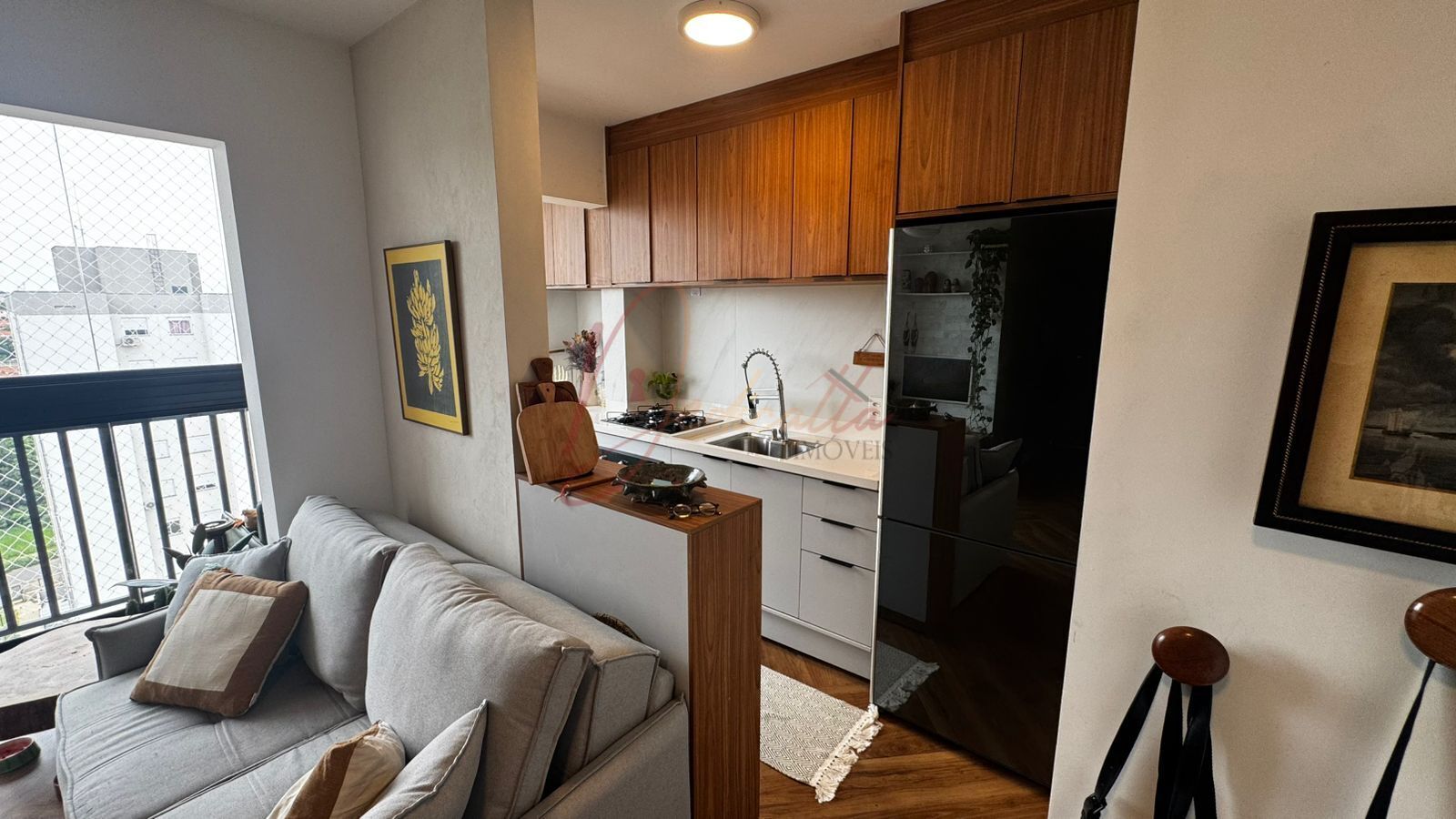A cozinha é funcional, contando com lavanderia separada para maior organização, e a sala se integra perfeitamente à charmosa varanda gourmet — o cenário ideal para o seu café da manhã ou para receber amigos com total privacidade.