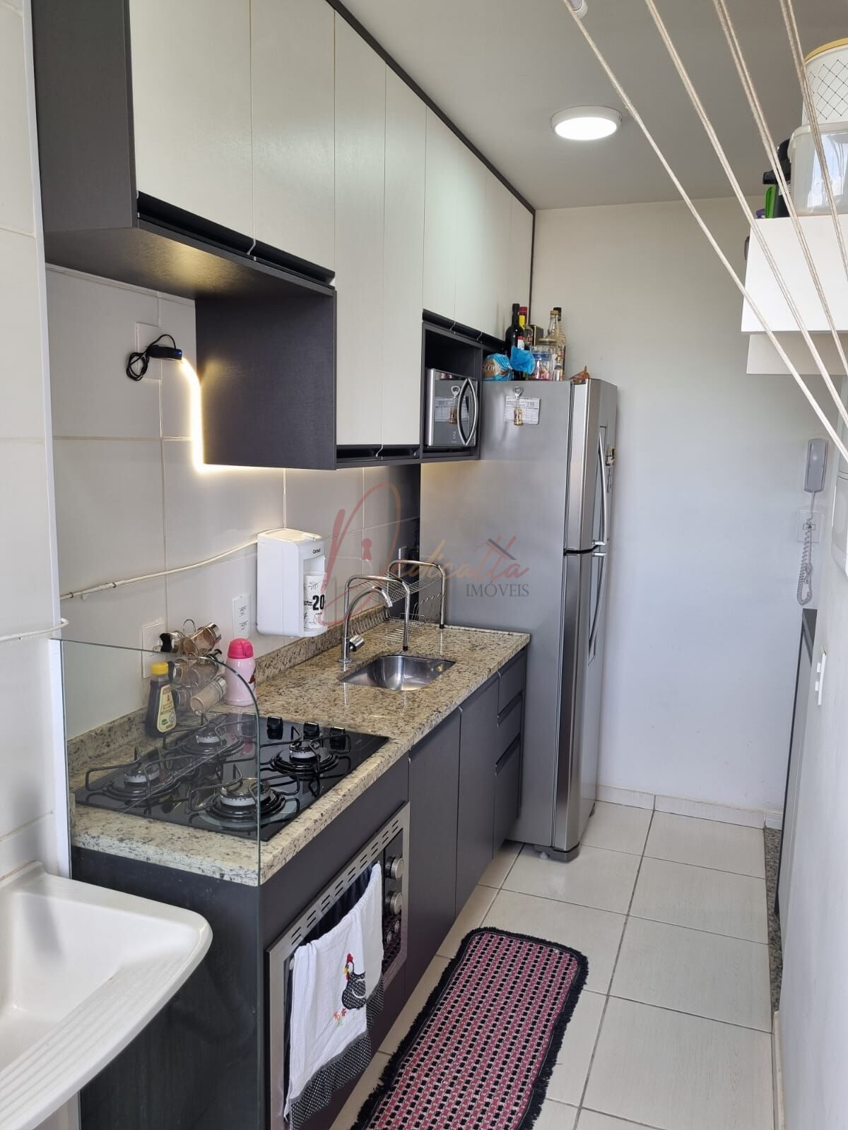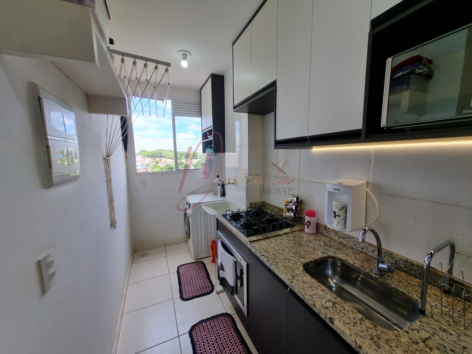 O imóvel conta com 2 dormitórios, 1 banheiro, sala integrada à cozinha, área gourmet e 1 vaga de garagem. Destaque para os móveis planejados na cozinha, equipada com cooktop e forno elétrico, além de ar-condicionado de 18 mil BTUs. O piso é vinílico com rodapé em MDF, proporcionando conforto e sofisticação.