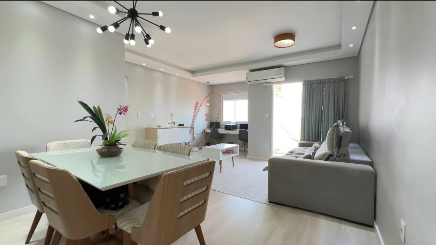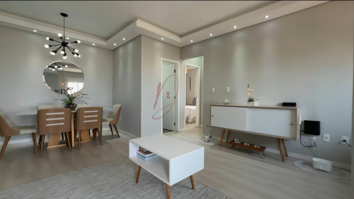A sala de jantar e a sala de estar são amplos e iluminados, com uma sanca de gesso que adiciona um toque de elegância ao ambiente.