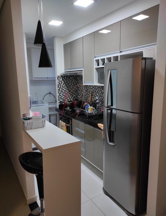 O condomínio oferece playground, salão de festas, quadra poliesportiva e portaria 24 horas, além de uma vaga de garagem coberta.