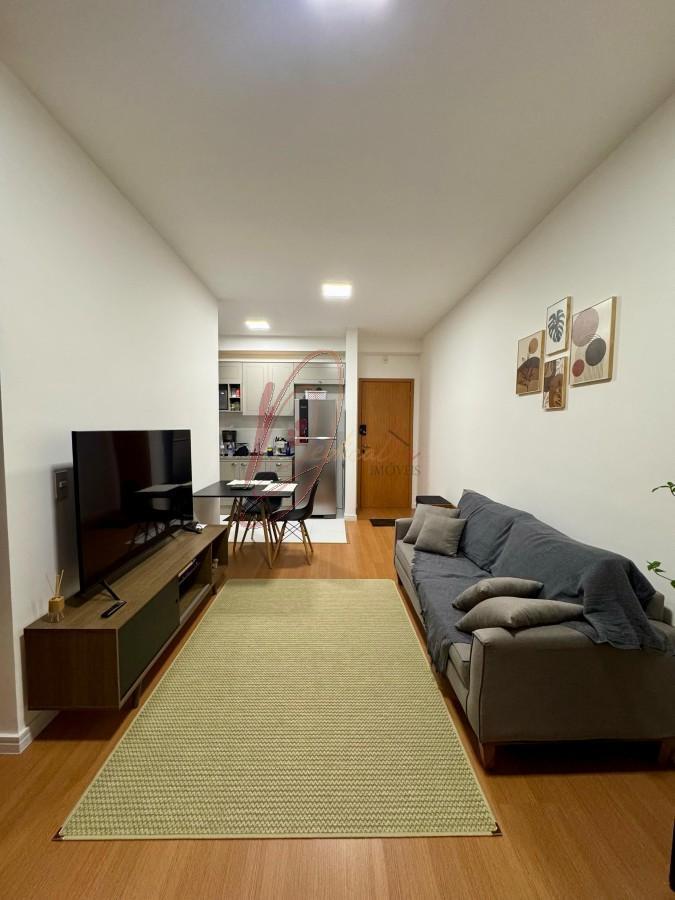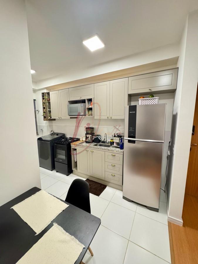 Apartamento composto por sala de jantar e estar que se conectam com piso vinilico, cozinha no estilo americano proporcionando uma bela visão da ampla sala, banheiro socia com box.