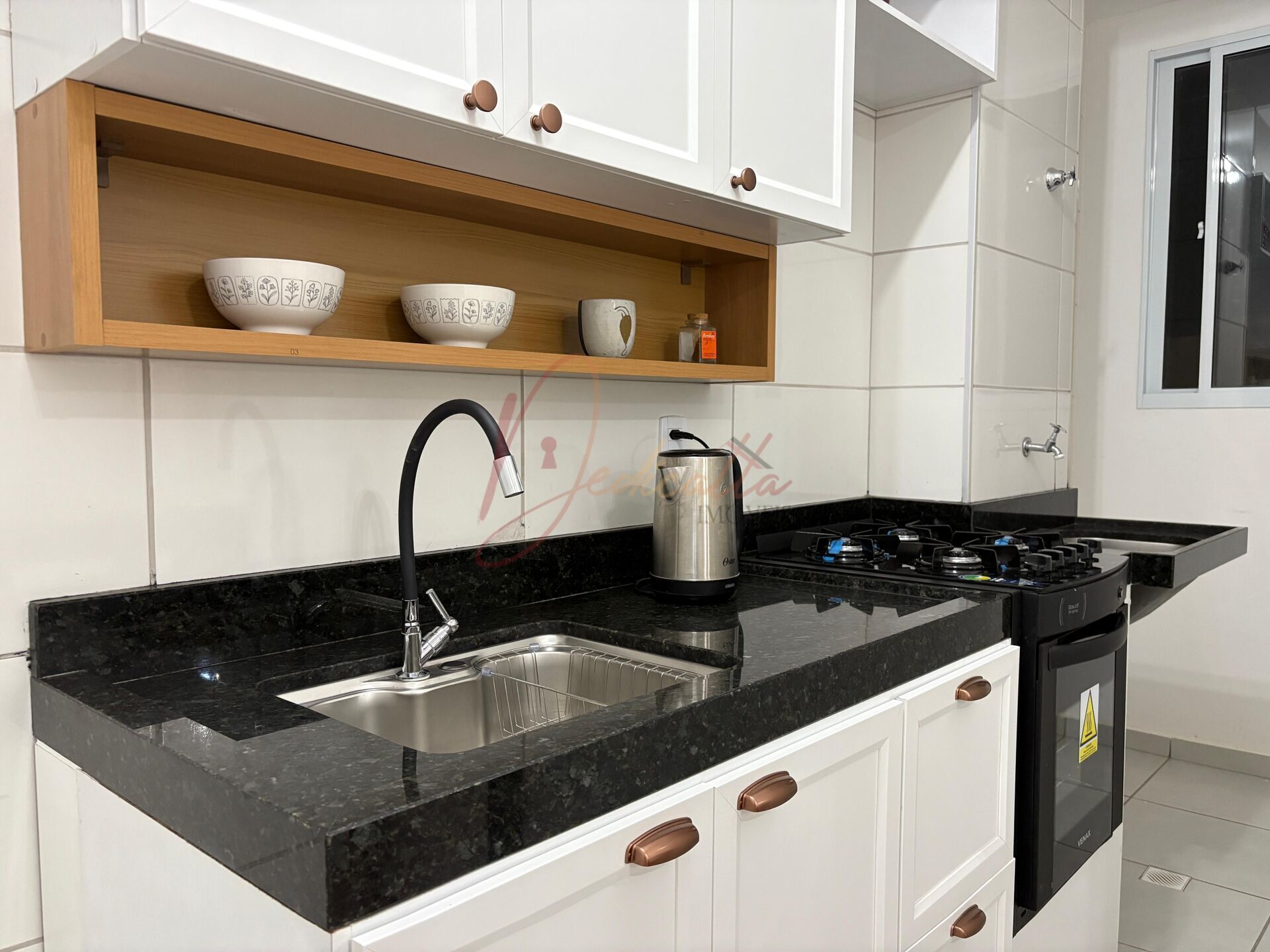 A cozinha é um diferencial à parte, equipada com armários planejados, fogão embutido e uma elegante bancada em pedra Verde Ubatuba com pia gourmet. O banheiro também já conta com box de vidro, armário e chuveiro instalado. Tudo isso em um condomínio com lazer completo, incluindo piscina e segurança 24 horas, em localização privilegiada próxima ao Shopping Hortolândia.