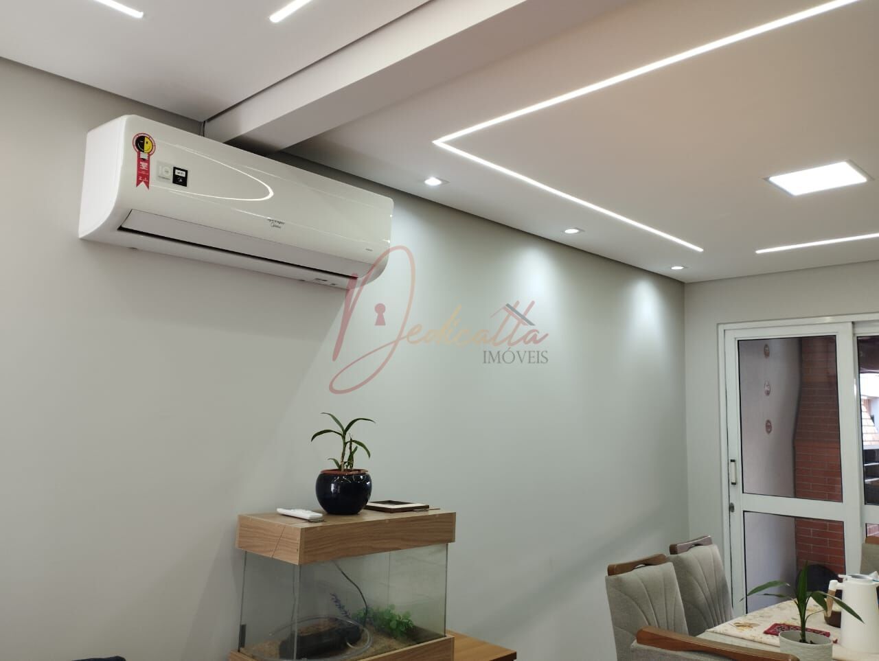 O ambiente interno é totalmente climatizado com ar-condicionado nos dois dormitórios e na sala, que por sua vez é integrada de forma moderna à cozinha e à sala de jantar.